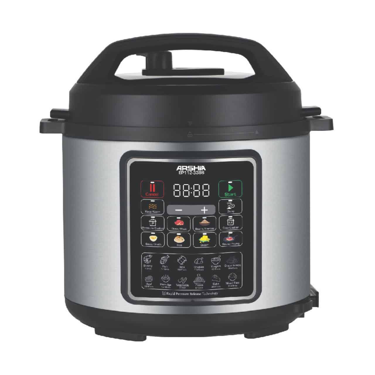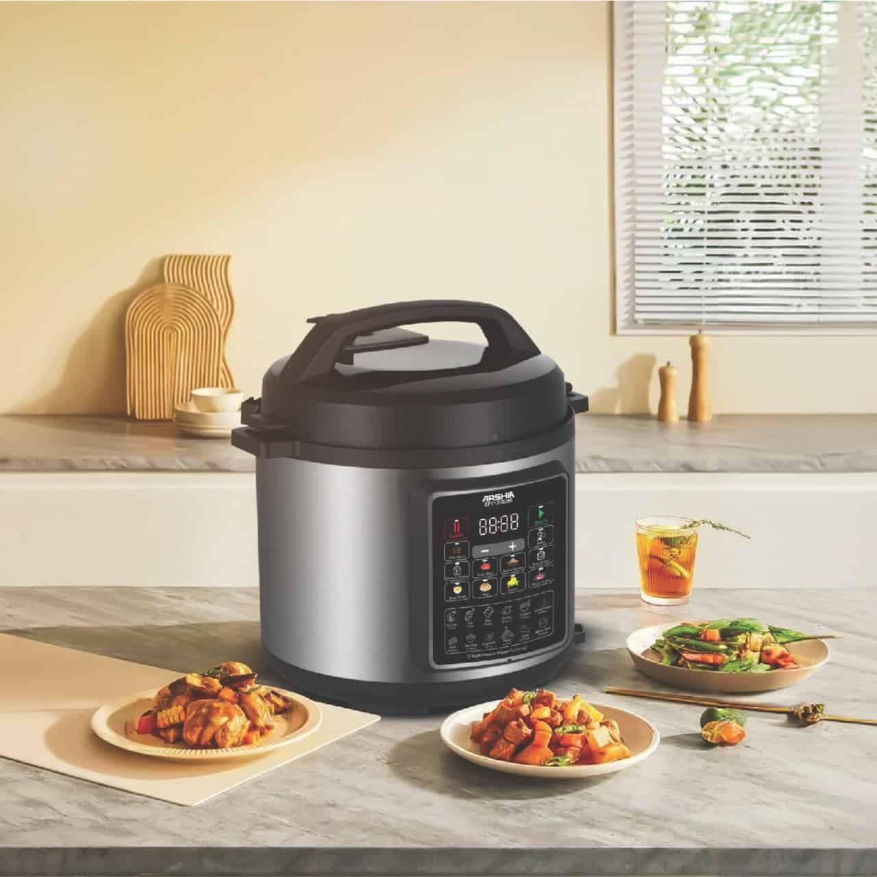 ارشيا طنجرة ضغط كهربائية رقمية سريعة بسعة 6 لتر مع 1000 واط، مستشعر ذكي ووظائف متعددة للطهي – Arshia موديل 3386