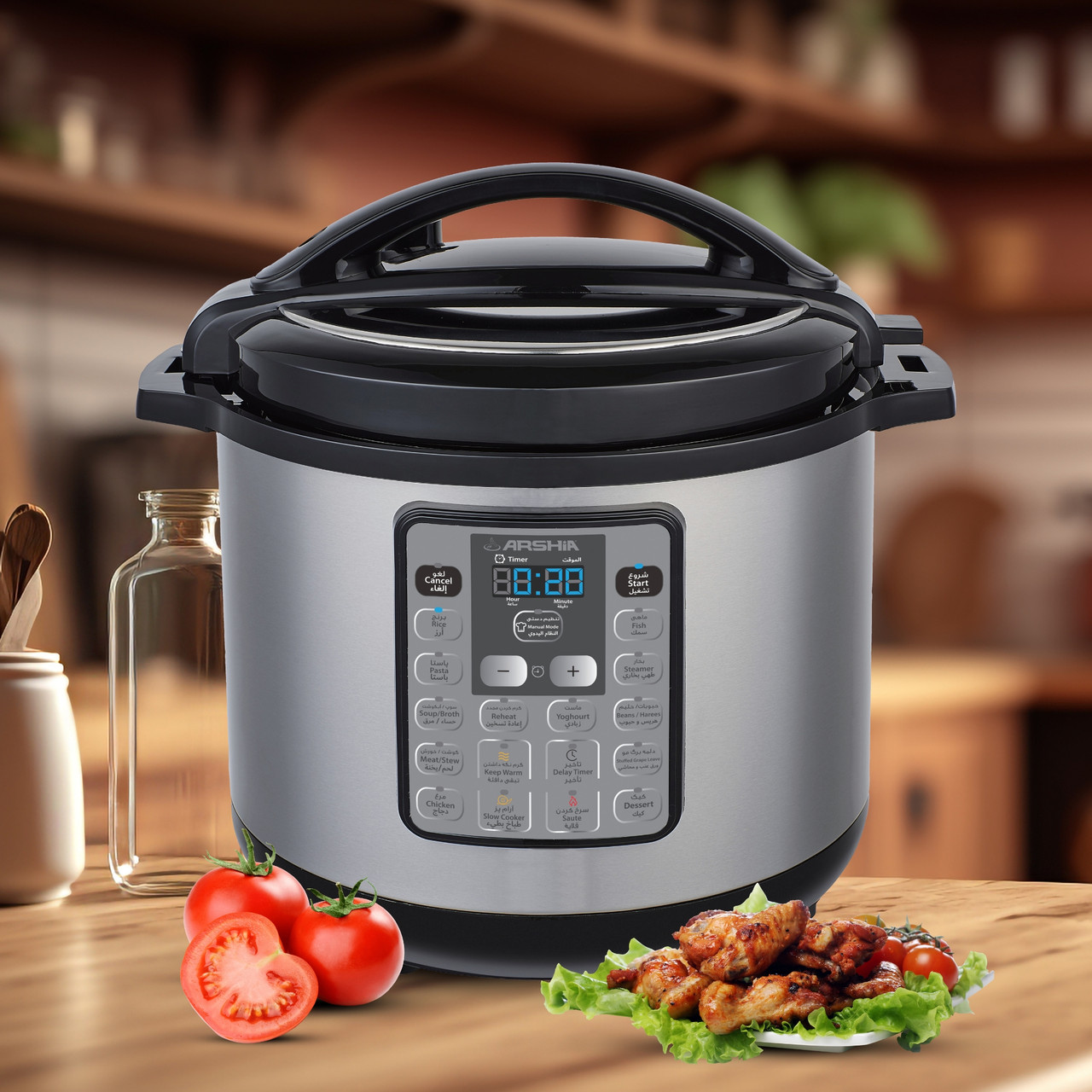 احصل على وجبات لذيذة وسريعة مع طنجرة الضغط الكهربائية الرقمية من آرشيا Arshia، المصممة لتجعل الطبخ اليومي أكثر سهولة وفعالية. بفضل سعتها الكبيرة 6 لتر وقوتها العالية، فهي مثالية لتحضير الوجبات العائلية في وقت أقل. مزودة بمستشعر ذكي يمنحك تحكمًا دقيقًا في عملية الطهي، ووظائف متعددة تشمل الأرز، اللحوم، الحساء وحتى الكيك. كل هذا مدعوم بتقنية الضغط السريع وتصميم آمن للاستخدام اليومي.